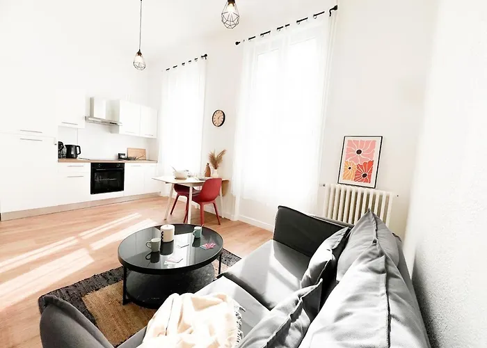 The beachfront Le Magnolia -T2 A 100M Plage Et Place Du Commando Saint-Nazaire apartment is located merely a 12-minute walk from the Panoramic Terrace of the Fortified Lock and 2.7 km from the Serpent d'Ocean Sculpture. Guests can make use of Wi-Fi for both business and leisure purposes.